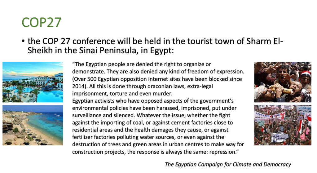 Now the COP 30 in November 2025 is in Brazil which, despite being another oil-rich police state has an open and democratic Climate Movement opening the way for mass lobbying and direct pressure on the fossil fuel corporations. Globally and locally we have a succession of protest actions and events in the lead-up to COP30. Join us!