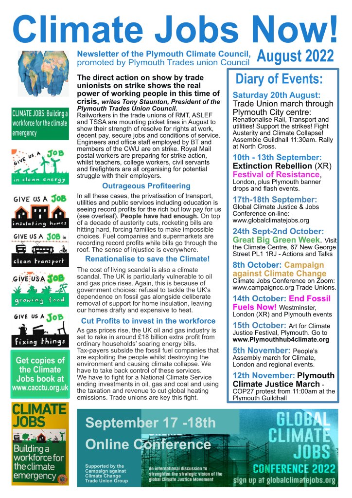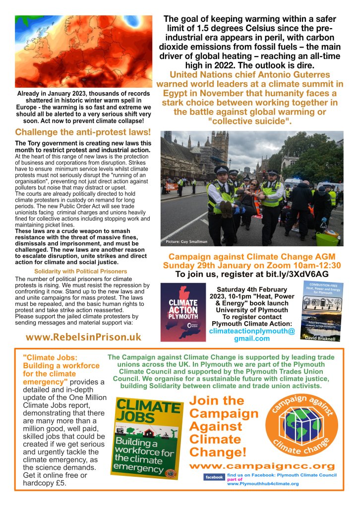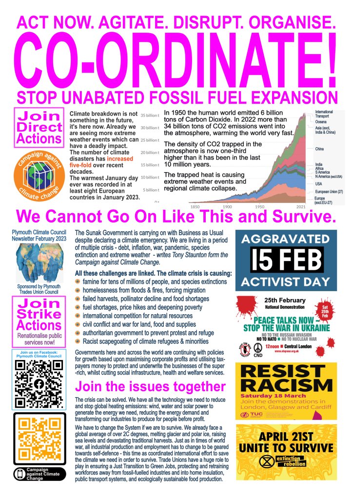 Publicise our events, support and attend them and offer your practical help to develop the largest possible climate campaign in Plymouth, and everywhere.