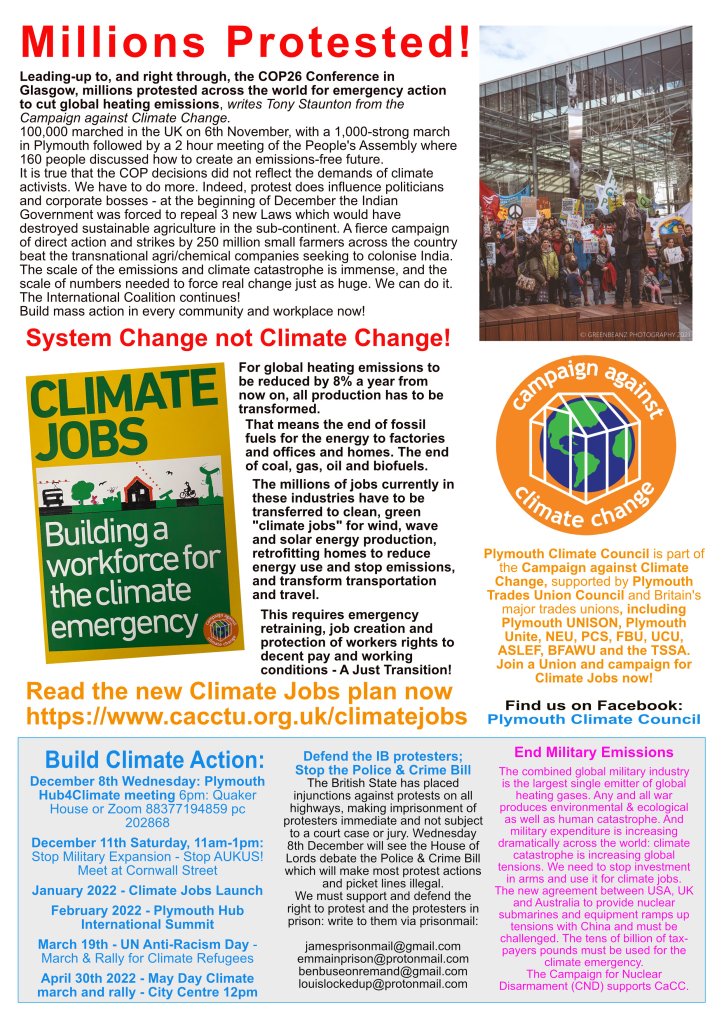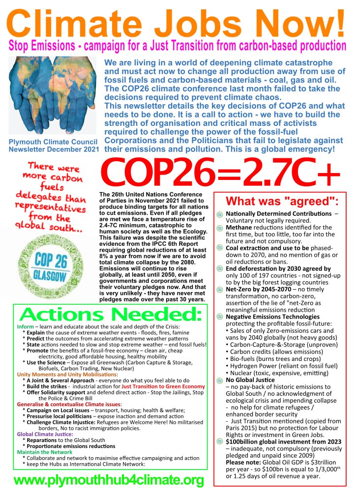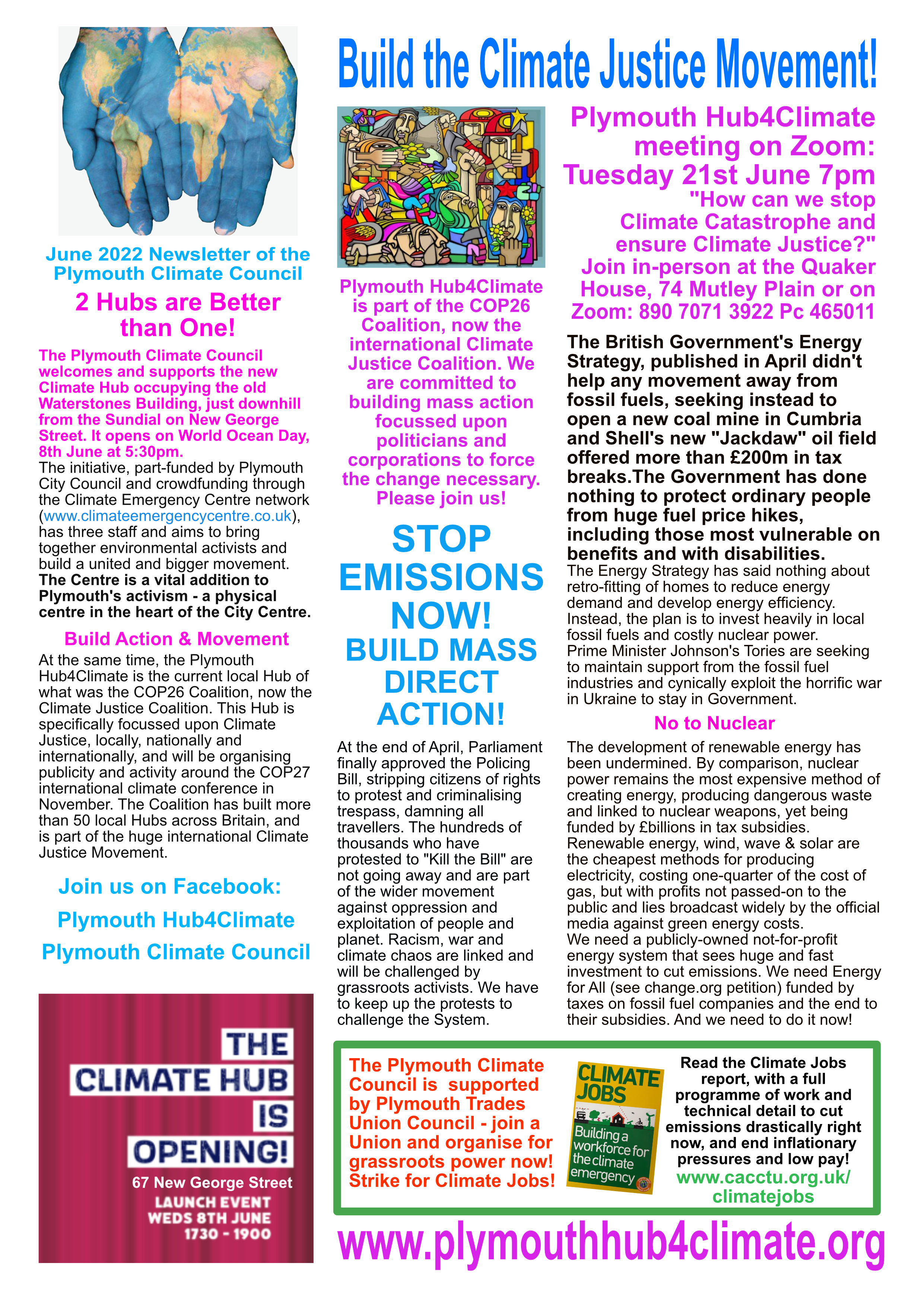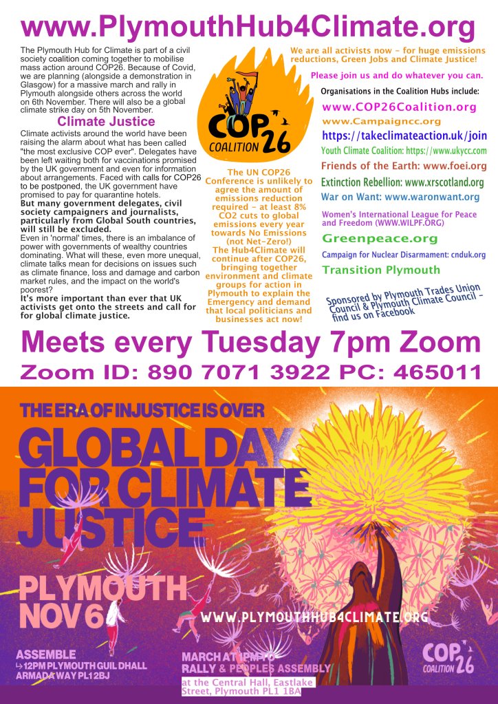 The outcomes, proposals and plans from the People’s Assembly will be used to plan and organise future events by the Plymouth Hub4Climate. Please Join Us for grassroots democracy in action, building power for climate justice from the bottom-up!