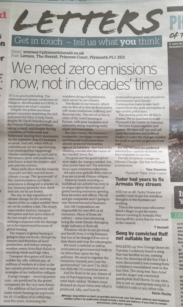 Letter to the Plymouth Herald, published Monday 8th November 2021