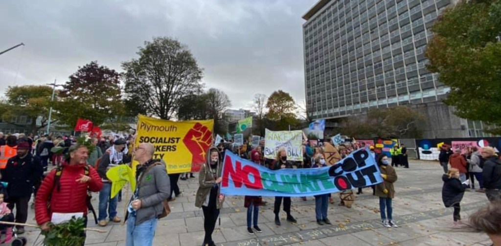 More than 1,000 people marched through Plymouth City Centre on Saturday 6th November 2021 as part of an international day of protest to the COP26 United Nations Climate Talks in Glasgow. Delegations from Plymouth’s Climate Movement marched in Glasgow at the same time.