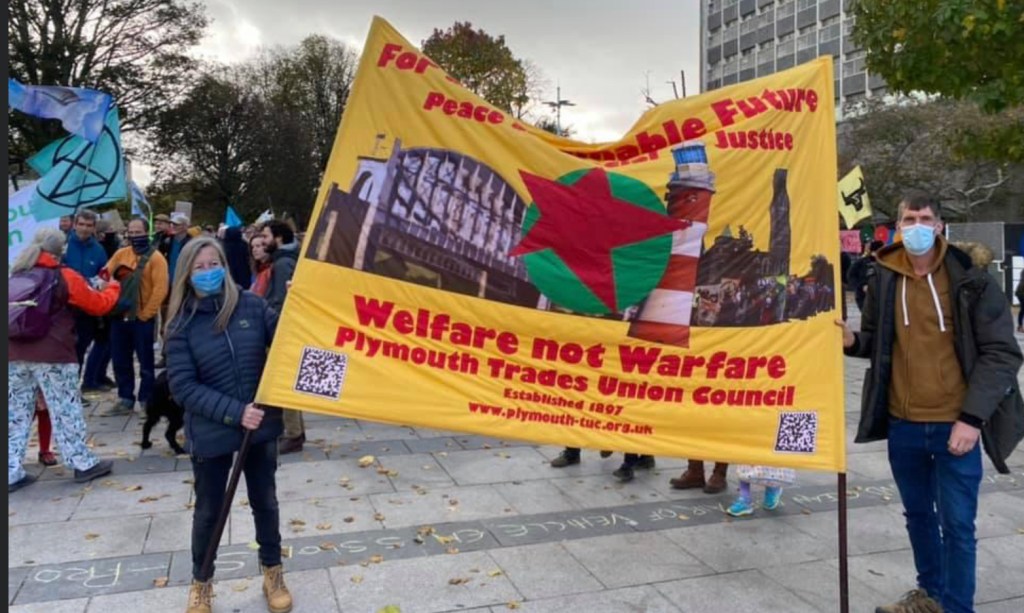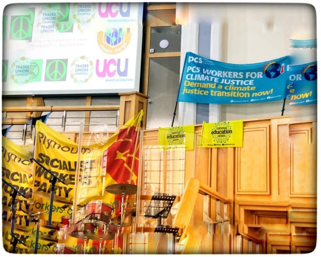 Trade unions including Public & Commercial Services Union (PCS – Civil Service), University & College Union (UCU – College staffs), Rail & Maritime Trades Union (Rail, Bus and Water transport workers), UNISON (Health, Social Care and Local Government workers), National Education Union (teachers and allied staff), Unite (manufacturing and general workers) and the Plymouth Trades Union Council (TUC), and political parties including The Green Party, Socialist Workers Party, Counterfire, Liberal Party, the Socialist Party and Plymouth Socialist Alliance.