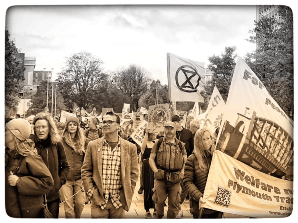 The starting point for all this is Protest. 1,000 of us marched through Plymouth City Centre on Saturday and met together at a People’s Assembly to take charge of the Future.We have to join together and protest. We have call-out and call upon the business and political leaders to make the changes needed for us all to survive, or get out of our way! We may all have our preferred solution but together we know, we have to protest to survive.