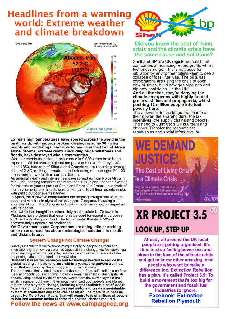 Many polls show that the majority of people are very worried about Climate Change. The “Greenwash” of lies, misinformation and false-assurances is designed to placate us, but, however powerful they think they are, we’re not fooled. The day-to-day experience of Climate Change for the working classes of the so-called wealthy West are set for endless crisis. The empty supermarket shelves, transport disruption and fuel-price hikes of the last couple of months are nothing compared with the damage set to be experienced because of global heating.