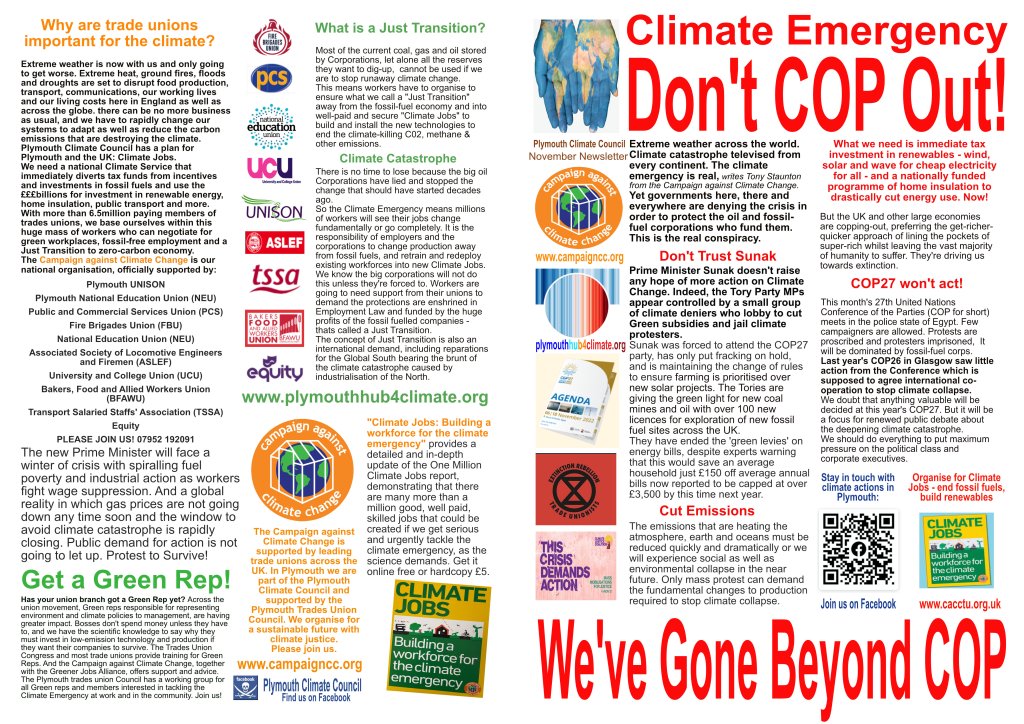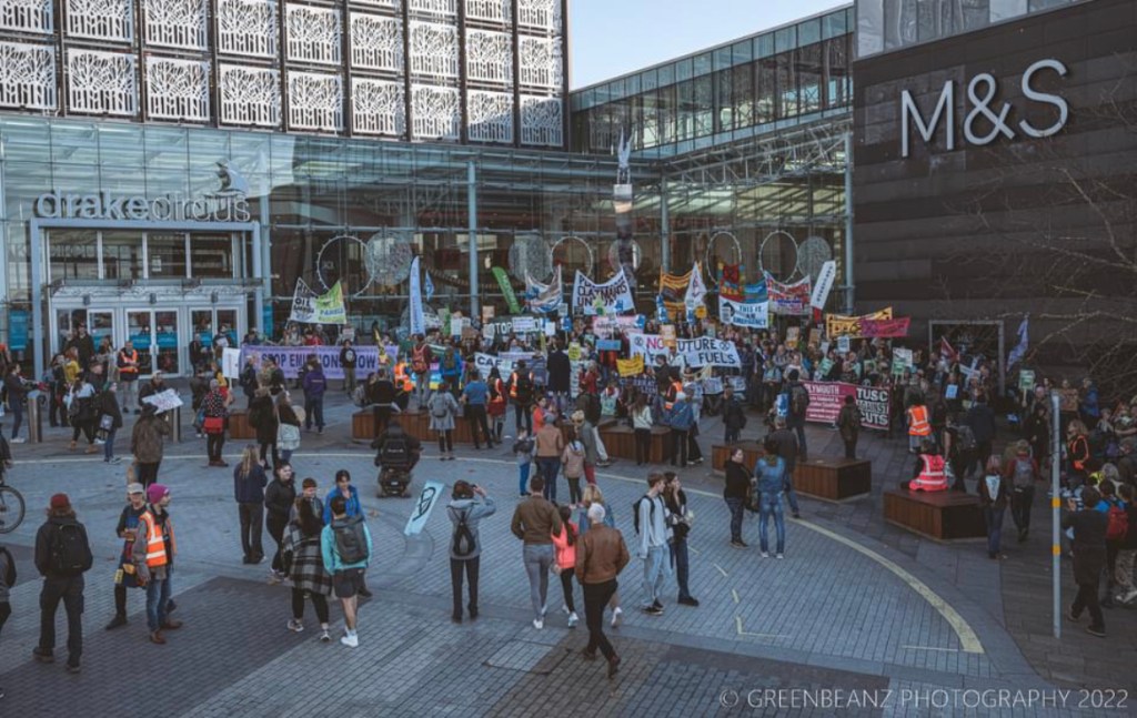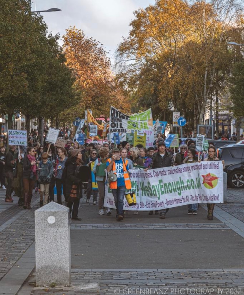 More than 500 people marched through Plymouth on 12th November as part of hundreds of protests across the world demanding climate justice from the COP27 talks in Egypt. The march was followed by Plymouth People’s Climate Assembly where more than 70 people discussed and planned the actions needed to force Governments and Corporations to stop global heating emissions and protect people and the ecology. (Thanks to Greenbeanz Photography – our chosen archivers)