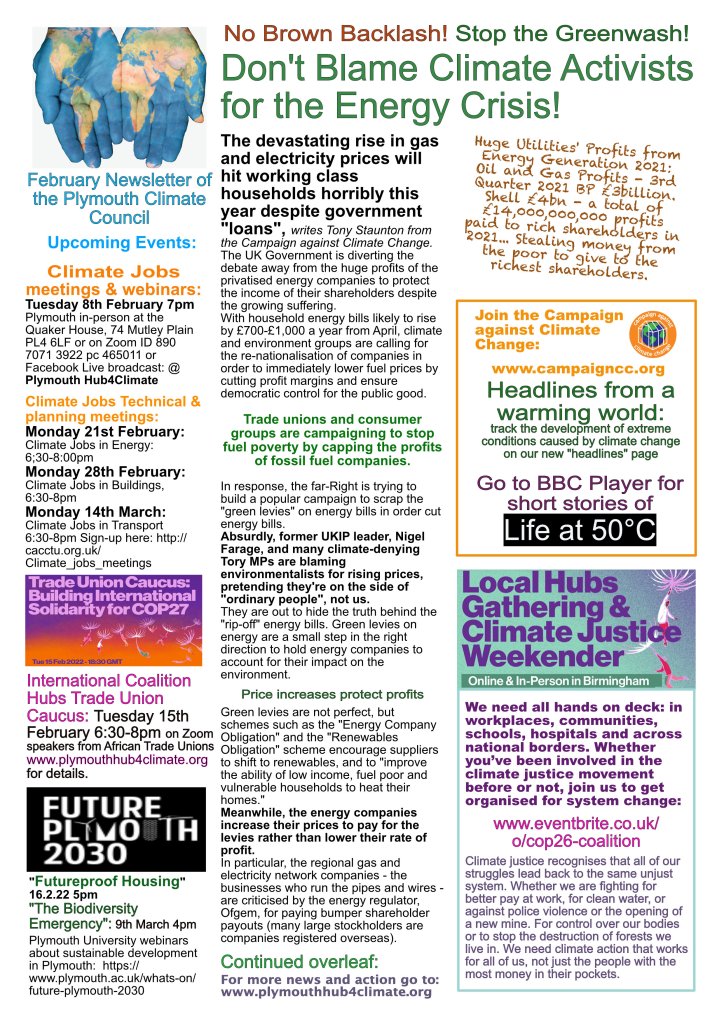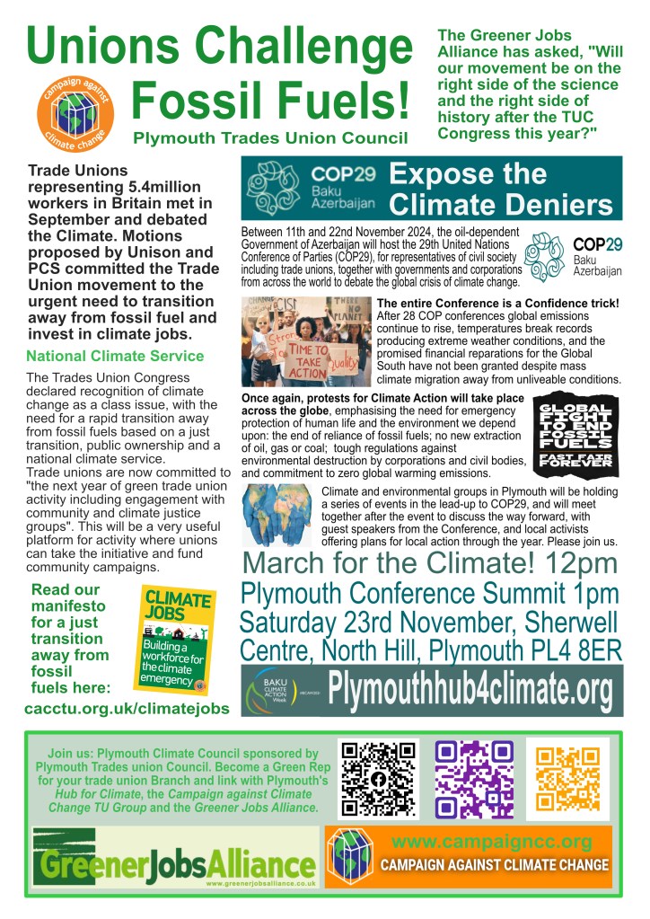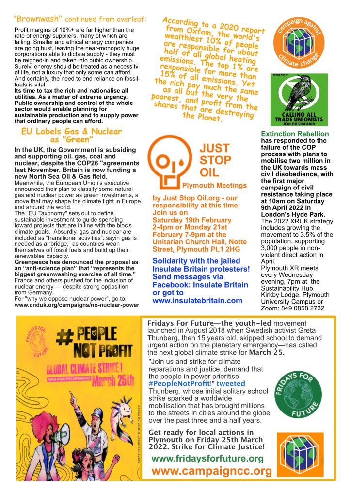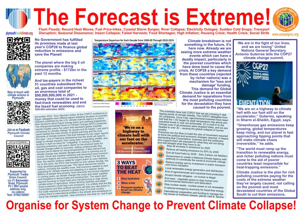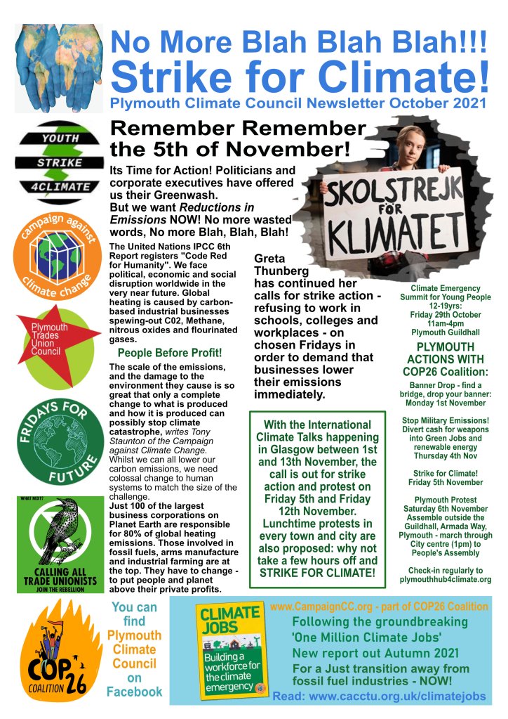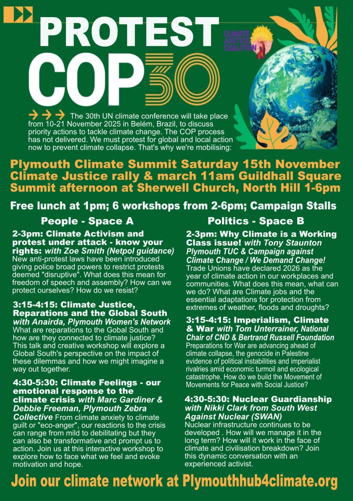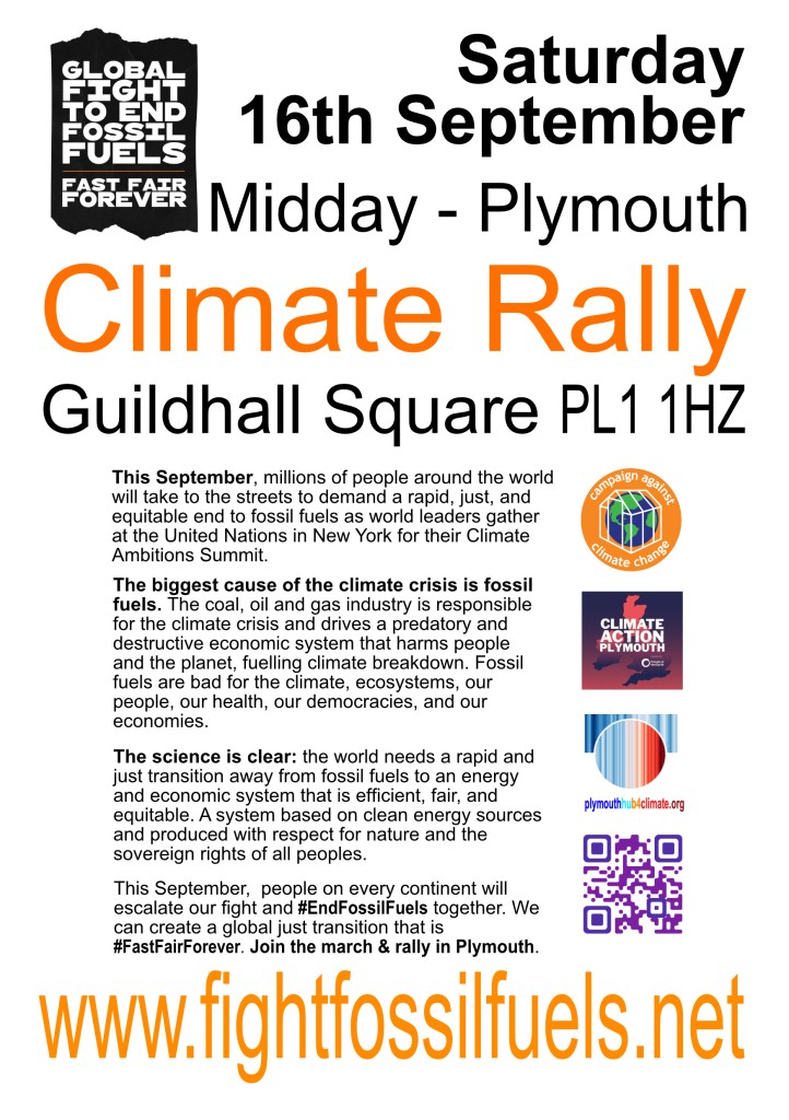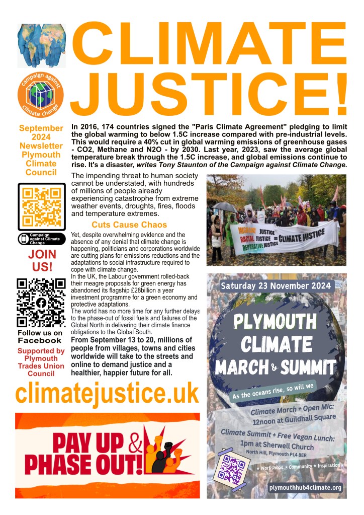 The Plymouth Hub for Climate Justice shares news space with local sister organisations including Plymouth Climate Council and Climate Action Plymouth via newsletters, events and this website – please download, read and circulate widely.